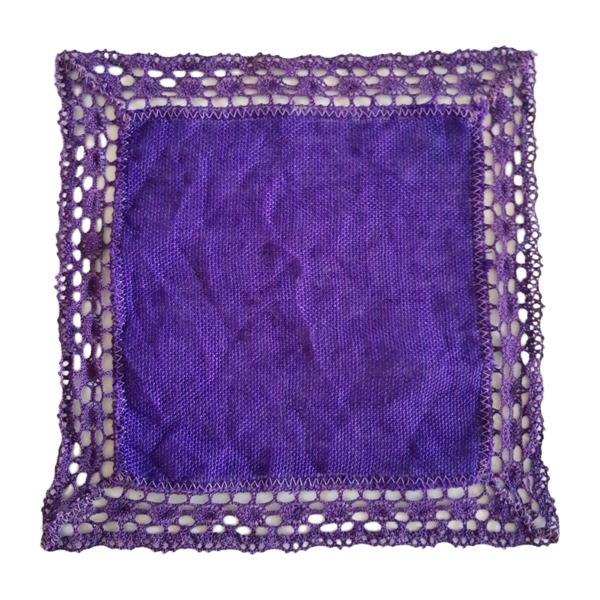 Erittäin kaunis, syvän violetti, pitsinen käsintehty #vintage pellavaliina. Käytä esim. Kattauksessa tai kukkaruukun tai kukkavaasin alla. Virheetön, tahraton siisti. #linen #home #homedecor #lace