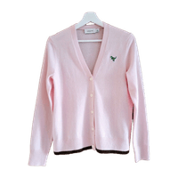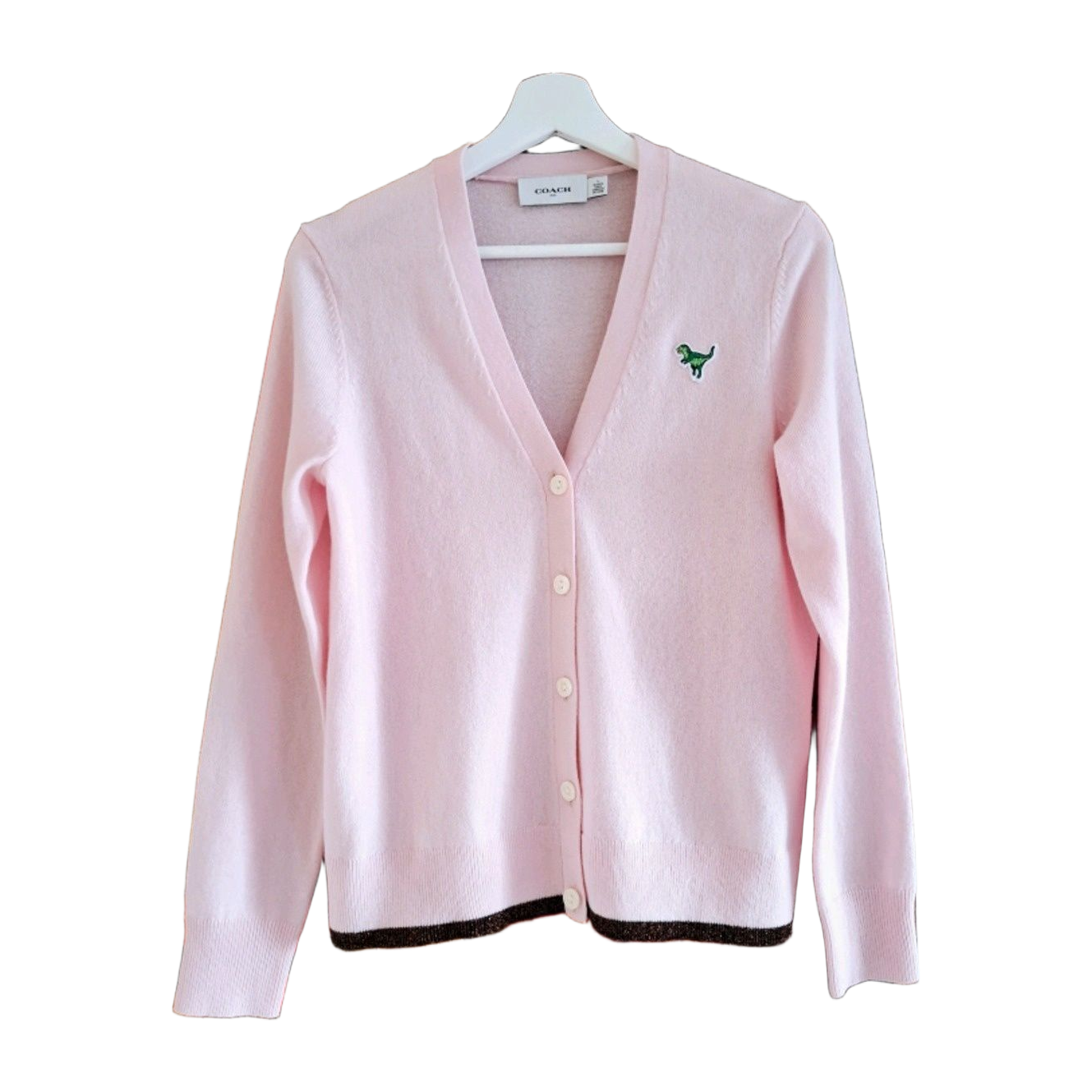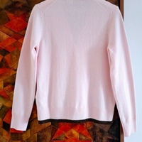Upea kashmir-villa neuletakki virheettömässä kunnossa! Kaunis vaaleanpunainen väri, rinnassa brodeerattu merkki, helmassa lurex-lankainen reuna.