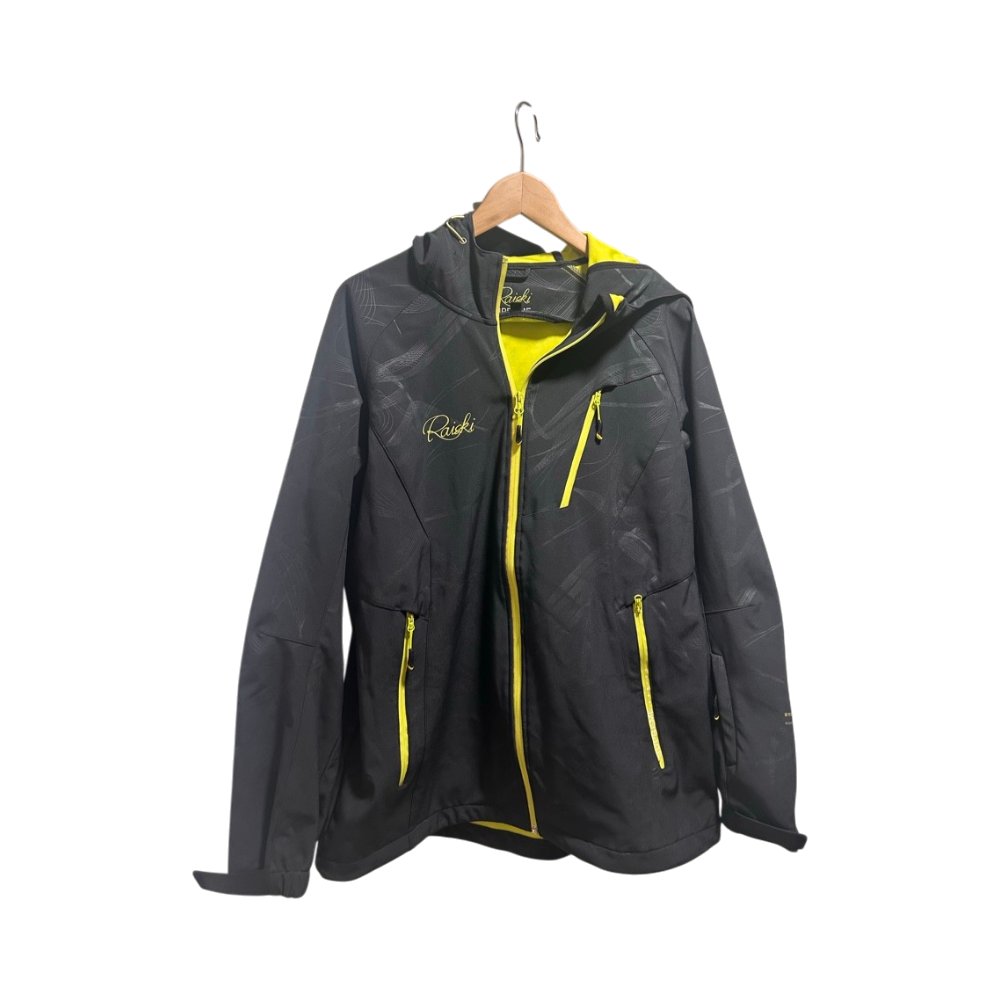 Hengittävä softshell-takki, vetoketjulliset taskut ja huppu.