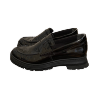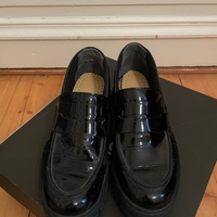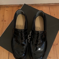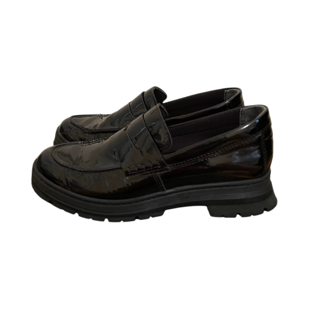 Musta kiiltävä loafer-kenkä, paksu kumipohja. Käytetyt, hyvä kunto. Uudet nahkapohjalliset. Koko 37.