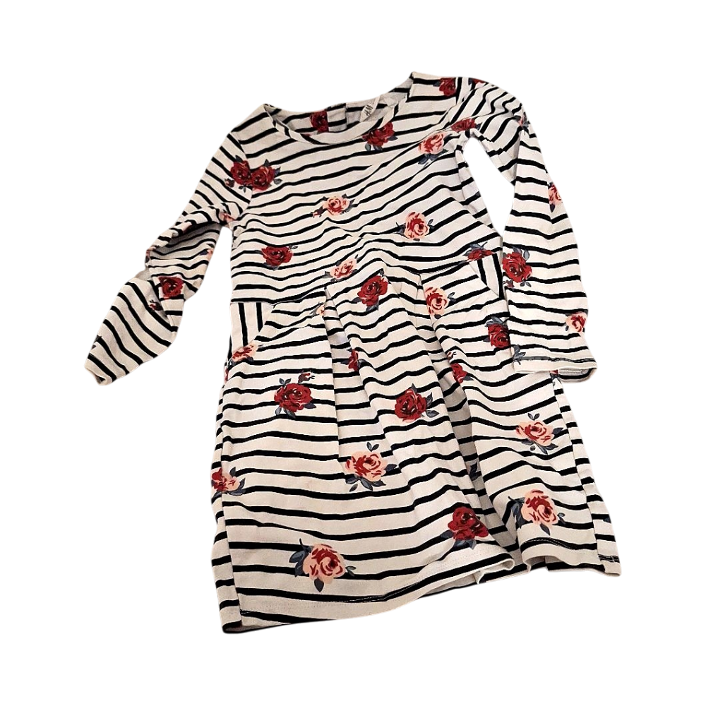 Käytetty raidallinen mekko kukkakuviolla