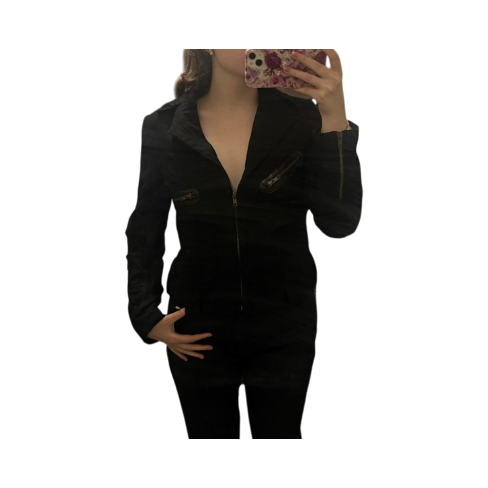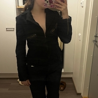 Mustan värinen, slim fit vetoketjullinen takki, koristeelliset taskut.