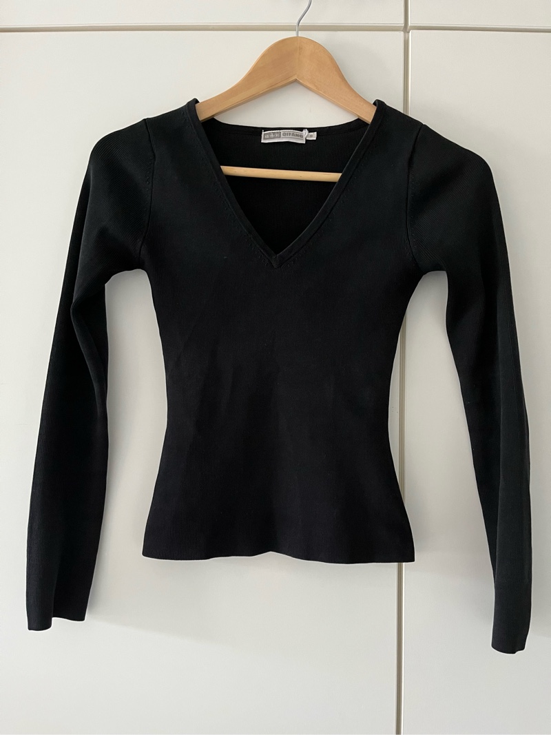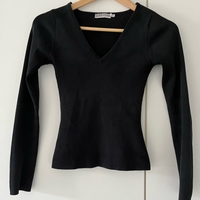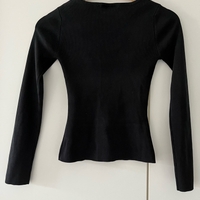 Musta pitkähihainen joustavalla neuloksella. Kokoa S mutta pienempi sellainen niin istuu aika hyvin myös XXS/XS. Siistissä kunnossa