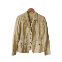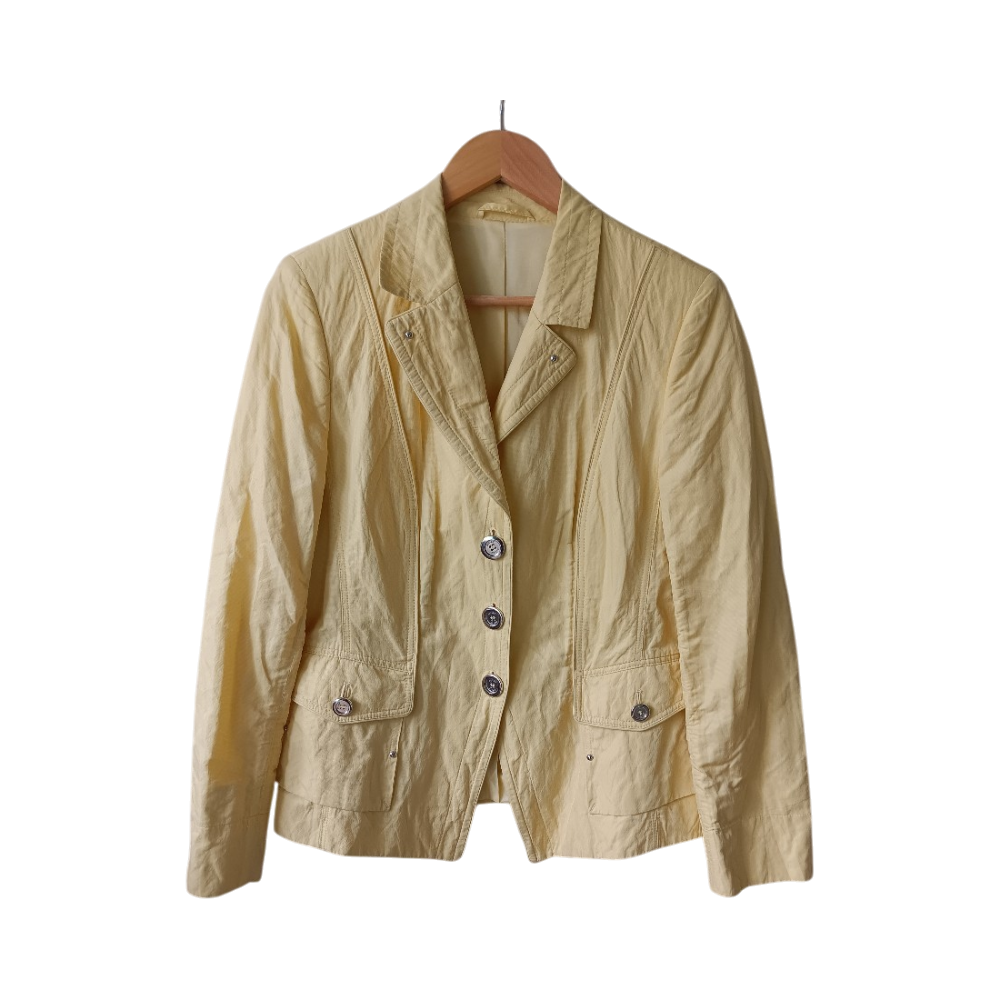 Naisten kevyesti vuorattu keltainen bleiseri, käytetty. Kirkkaamman viilemmän keltainen kuin kuvissa.