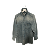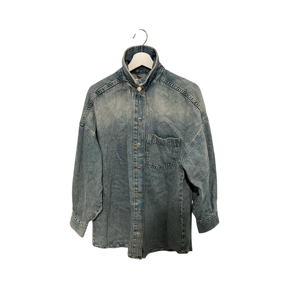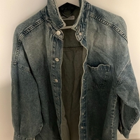 Oversize vaaleansininen farkkutakki, napit edessä ja rintatasku.
