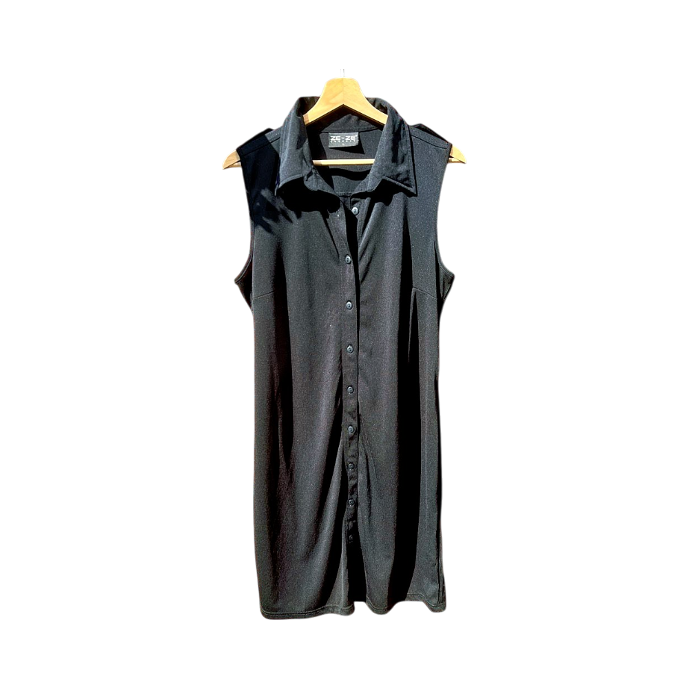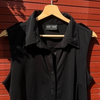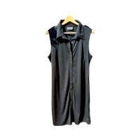 Musta sleeveless mekko napituksella, polyesteriä. Koko L. Hyvässä kunnossa.