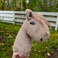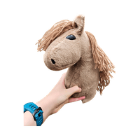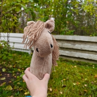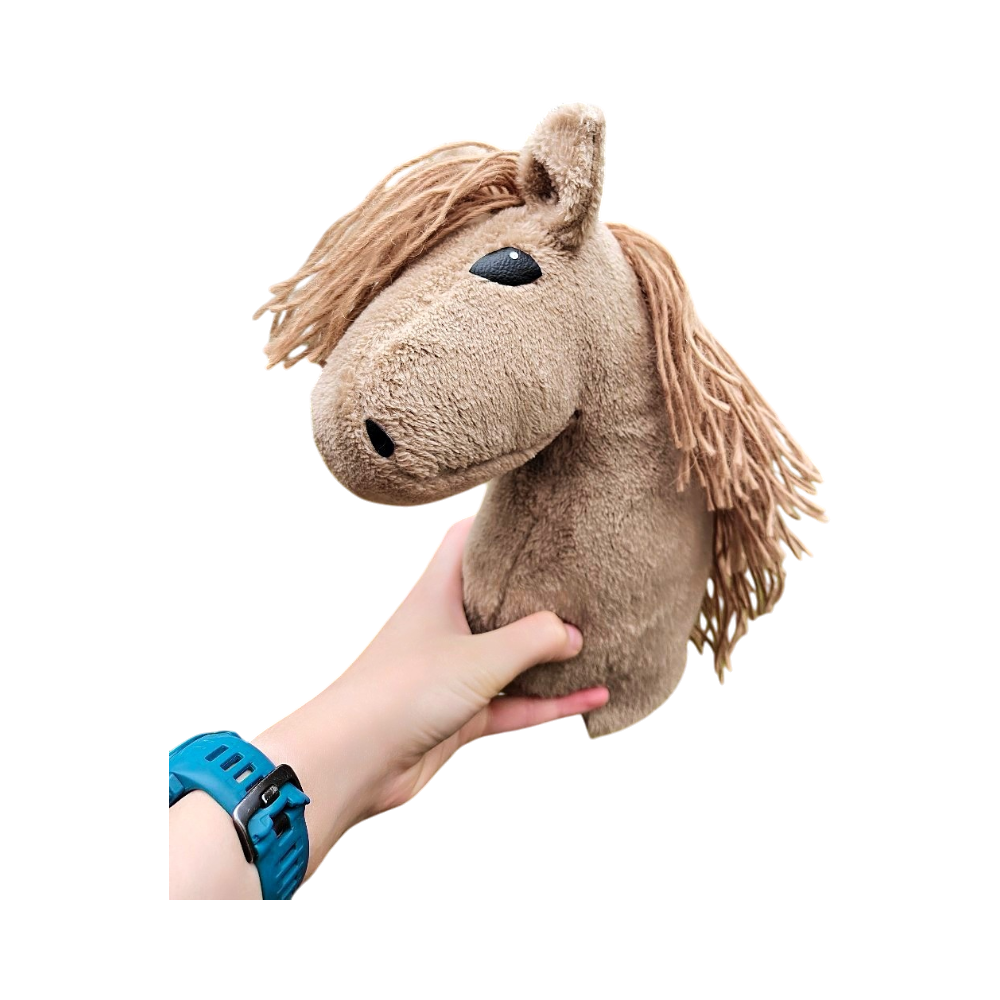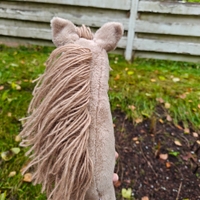 Vaalean ruskeasta velboasta tukikankaalla valmistettu pieni alle A4 kokoinen keppari. Hevonen on vino.