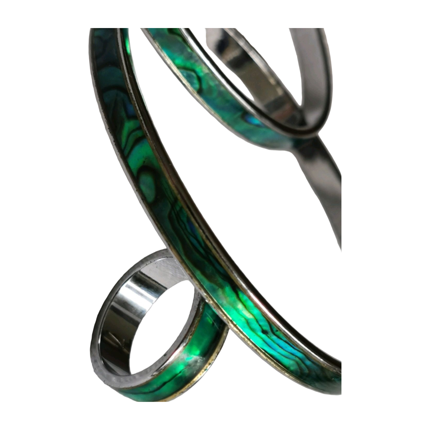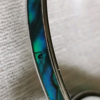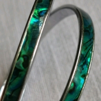 Materiaali: Uusiseelantilainen paua helmiäinen (alkuperäiskansan koruissa käytetty paua simpukan kuori, ainutlaatuinen Uudelle-Seelannille) ja korumetalli.