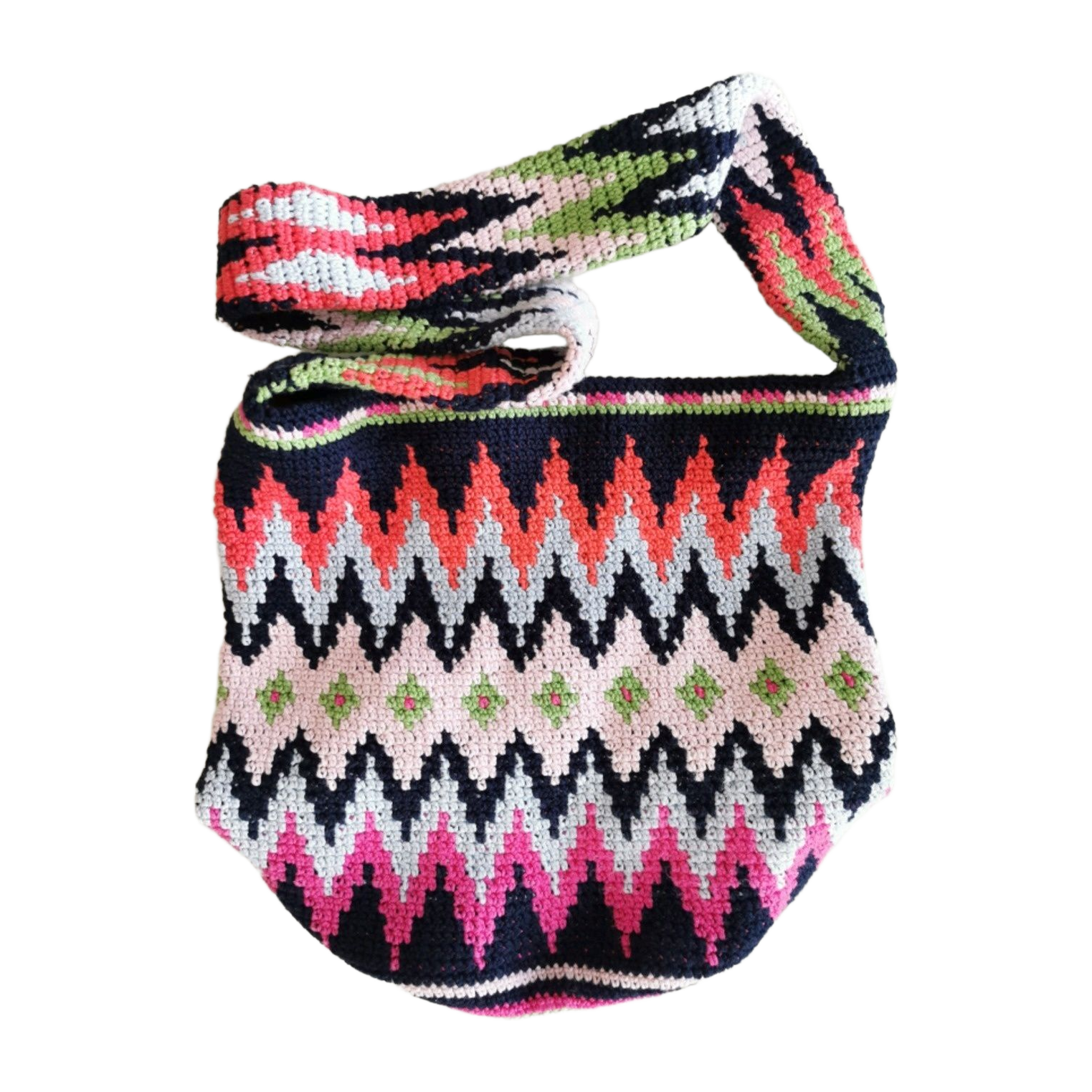 Ihana värikäs käsintehty (virkattu) Mochila -laukku. Vuorattu, sisällä vetoketjutasku