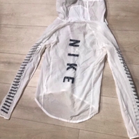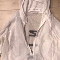 Kevyttä kangasta oleva hupullinen Niken urheilutakki. Valkoinen väri. Koko S.