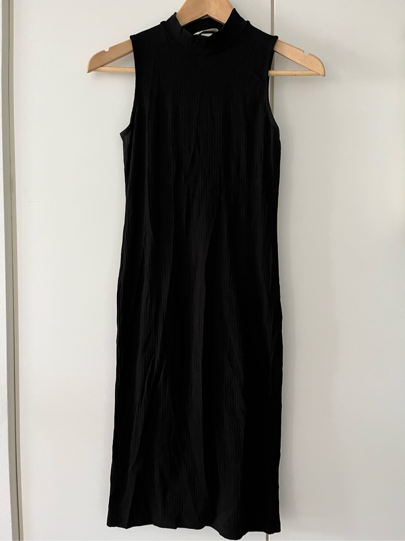 Ihonmyötäinen musta hihaton mekko koossa XS. Mekko on joustavaa kangasta ja takana keskellä helmaa on halkio. Erinomaisessa kunnossa