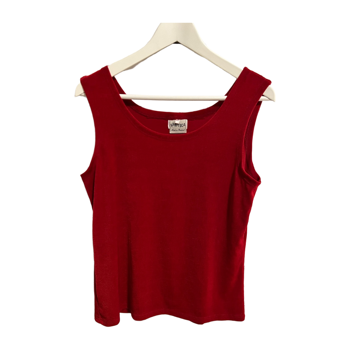 Punainen hihaton toppi, mukavaa ja joustavaa materiaalia. Koko 40. Made in Finland. Kangas hieman kiiltävää.