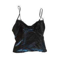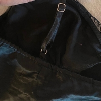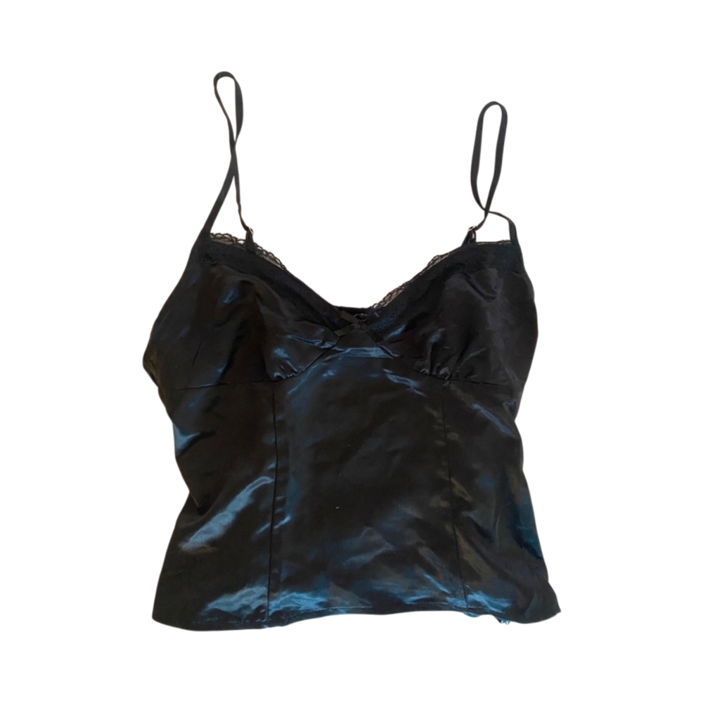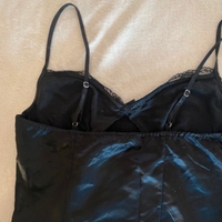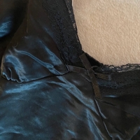 Satiinimusta yöpaita pitsireunuksella, säädettävät olkaimet.