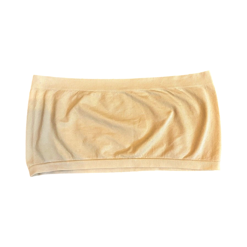 Vaalean beige bandeau koossa S. Pituus 32cm ja korkeus 15cm, mutta venyy. Ei varmuutta merkistä mutta tyyliä Shein tmv.