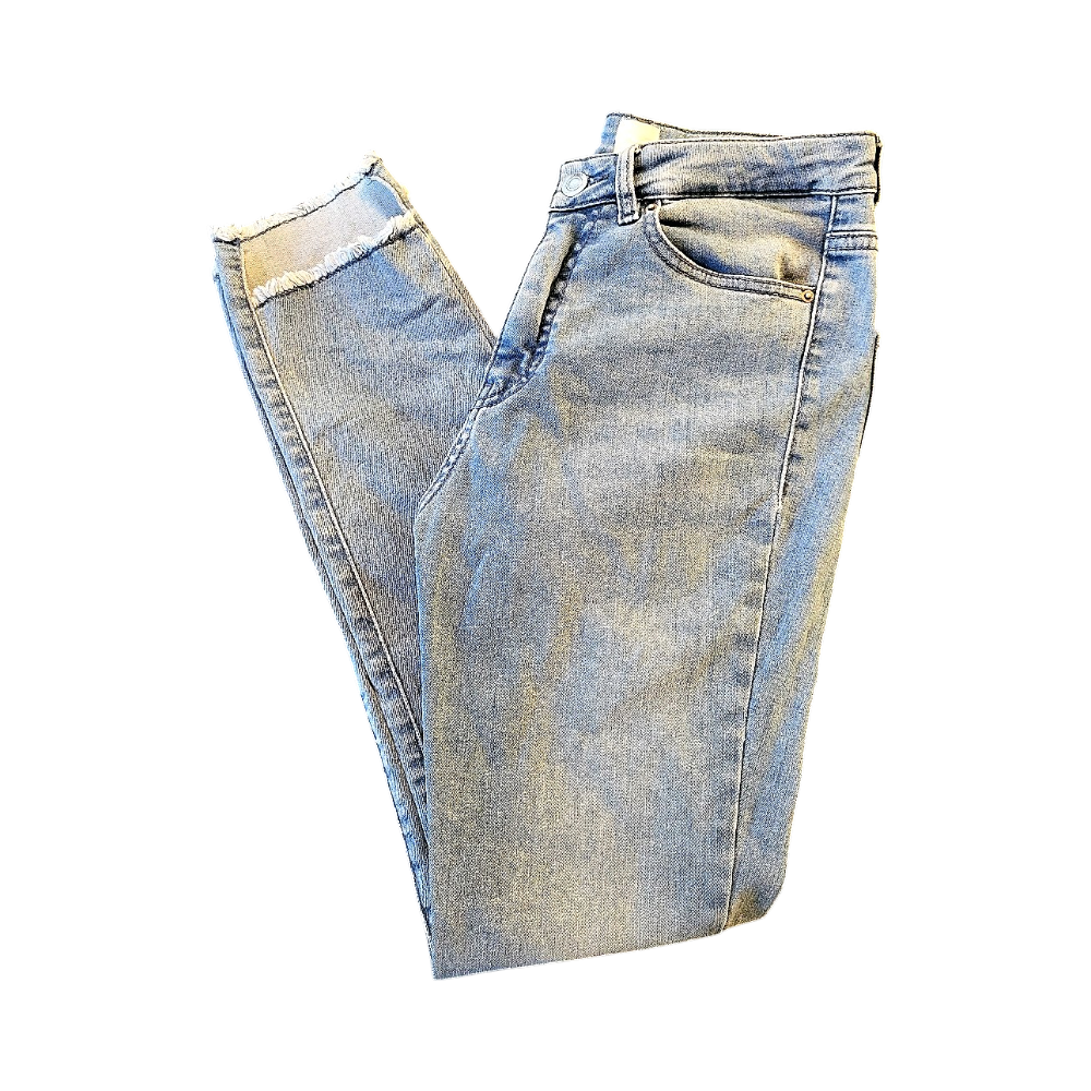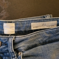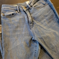 Hyvin vähän käytetyt Bossin skinny-farkut joissa spesiaali leikkaus lahkeen etuosassa. Vyötärö leveys 31cm ja korkeus 24cm, lahkeen sisäpituus edestä 65cm ja takaa 70cm.