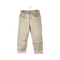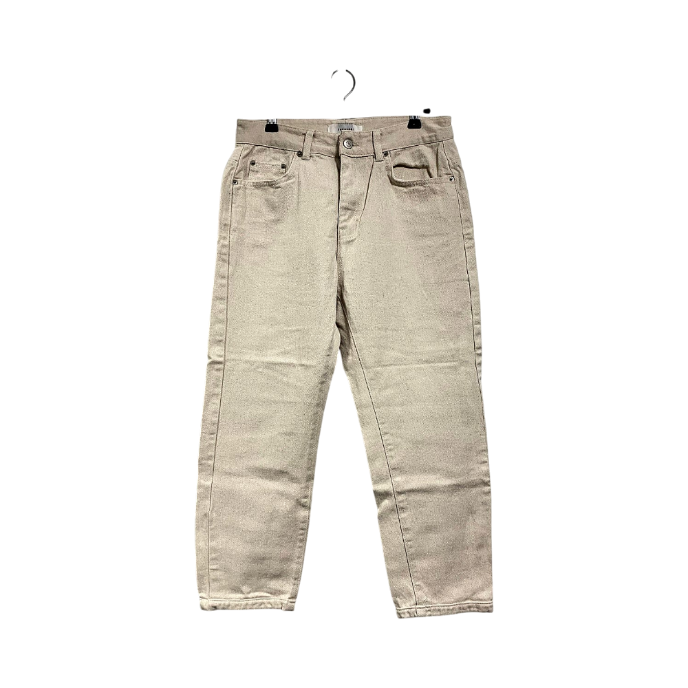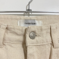 Luonnonvalkoiset balloon-fit farkut (croppattu ja korkeavyö malli). Merkki The Stori, ostettu Koreasta. Koko on 2L (korealainen koko), vastaa naisten koko M mielestäni. Vyötärö noin 76cm, pituus 85cm. Mukava 100% puuvilla kangas. Vähän käytetty ja tosi hyvässä kunnossa.