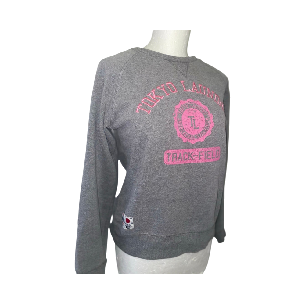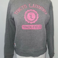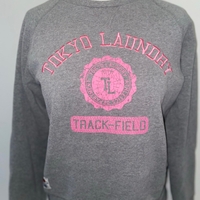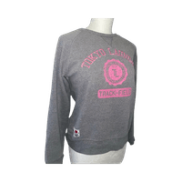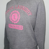 Harmaa collegepaita pinkillä printillä, rento track-field-malli.