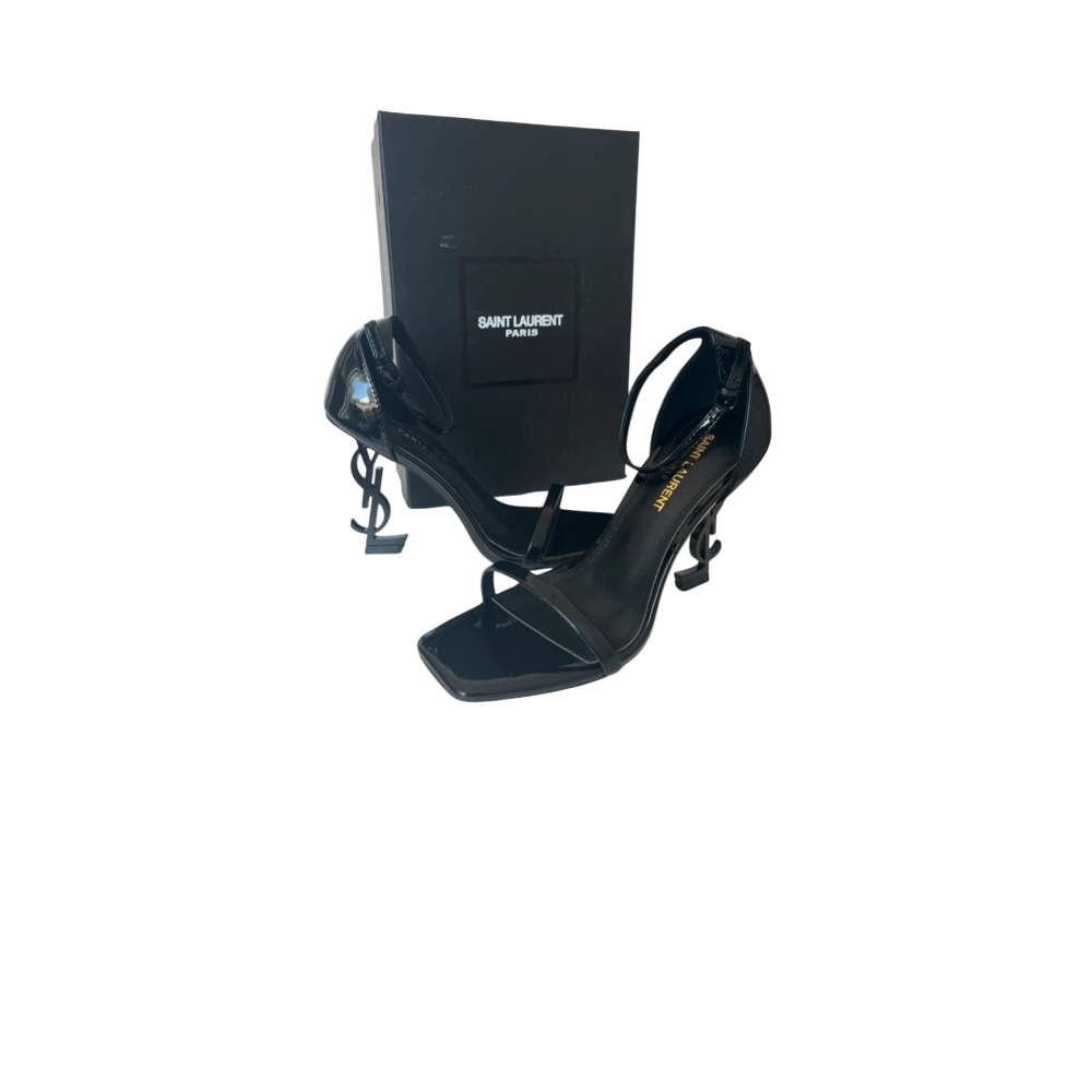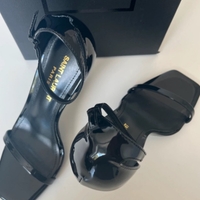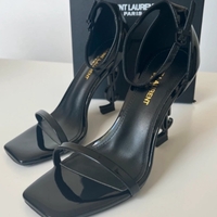 Kiiltävä musta sandaali, YSL-logo koko 37 uusi