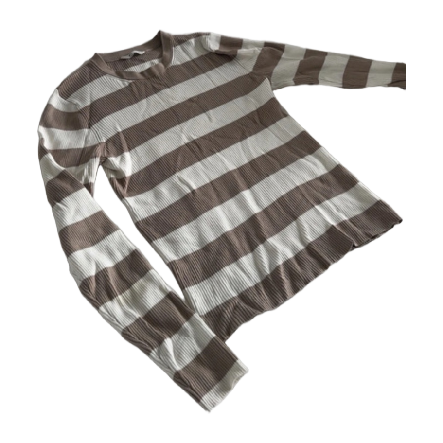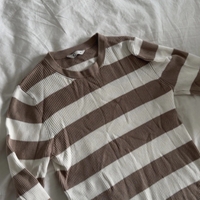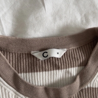 Beige-valkoraitainen ribbineule, pitkähiha, vastaa kokoa s