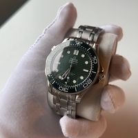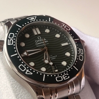 Omega Seamaster Diver 300M - miesten kello. Tyylikäs ja kestävä automaatti, vihreällä kellotaululla ja keraamisella kuorella. METAS-sertifioitu kaliiperi 8800 takaa tarkan käynnin ja 55 tunnin käyntivaran. Safiirilasi, 300 m vesitiiviys ja teräsranneke. Mukaan paperit kuitti ja boksi.