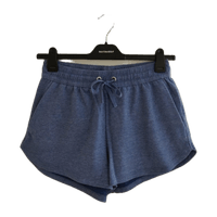 Hyväkuntoiset mukavan rennot shortsit taskuilla, vyötäröllä kiristysnauha. Miellyttävän pehmeää materiaalia. Koko M. Puuvilla/polyesteri.