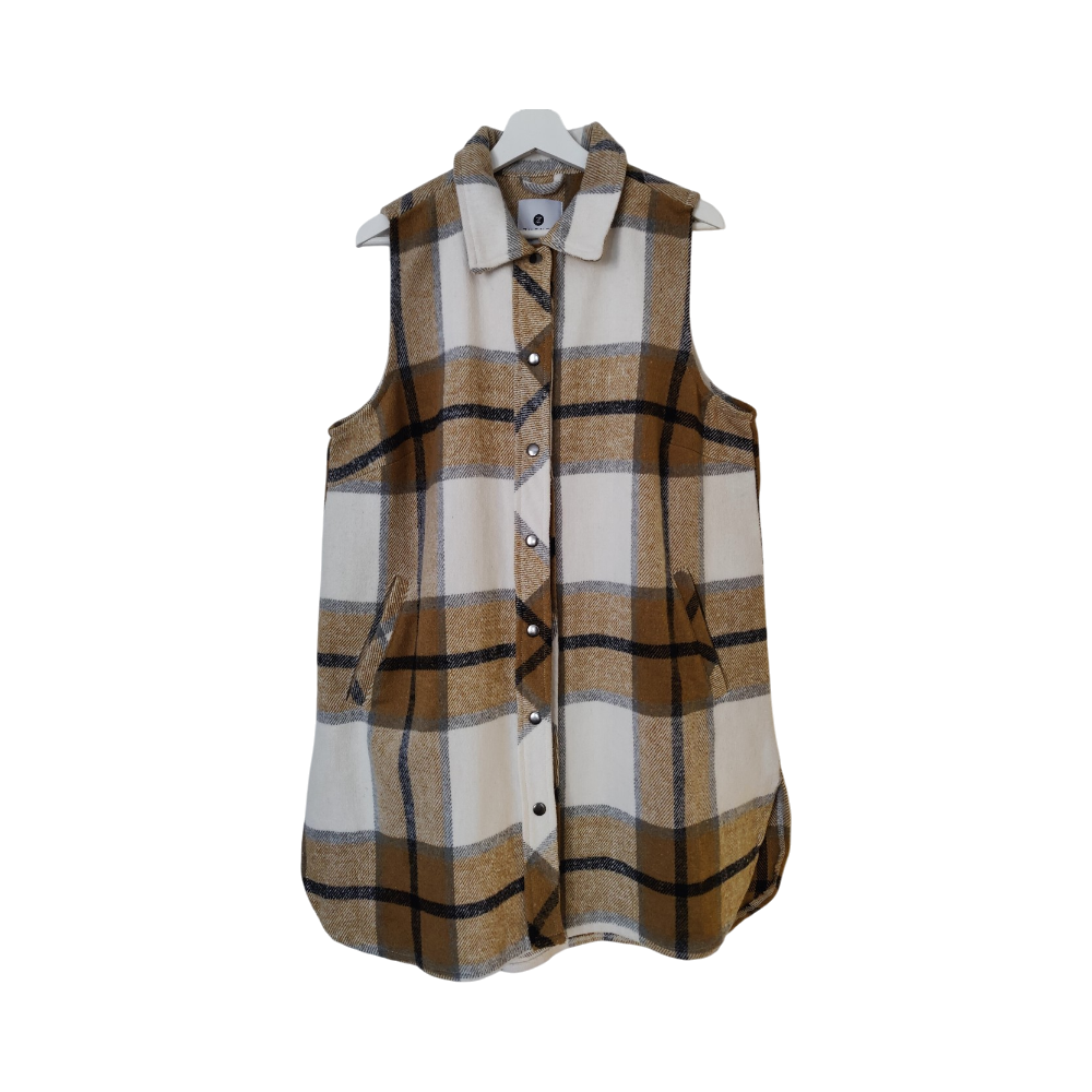 Kyseessä siis pitkä liivi (näyttää kuvassa lyhyeltä). Mittoja: kai-kai on 57-58cm ja olka-helma 89-90cm.