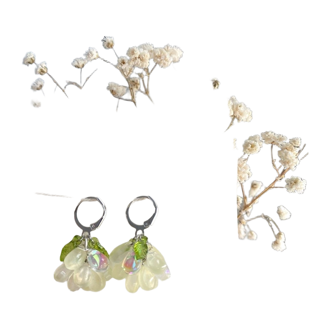 Käsintehdyt korvakorut lasihelmillä. Metalliosat ruostumatonta terästä.