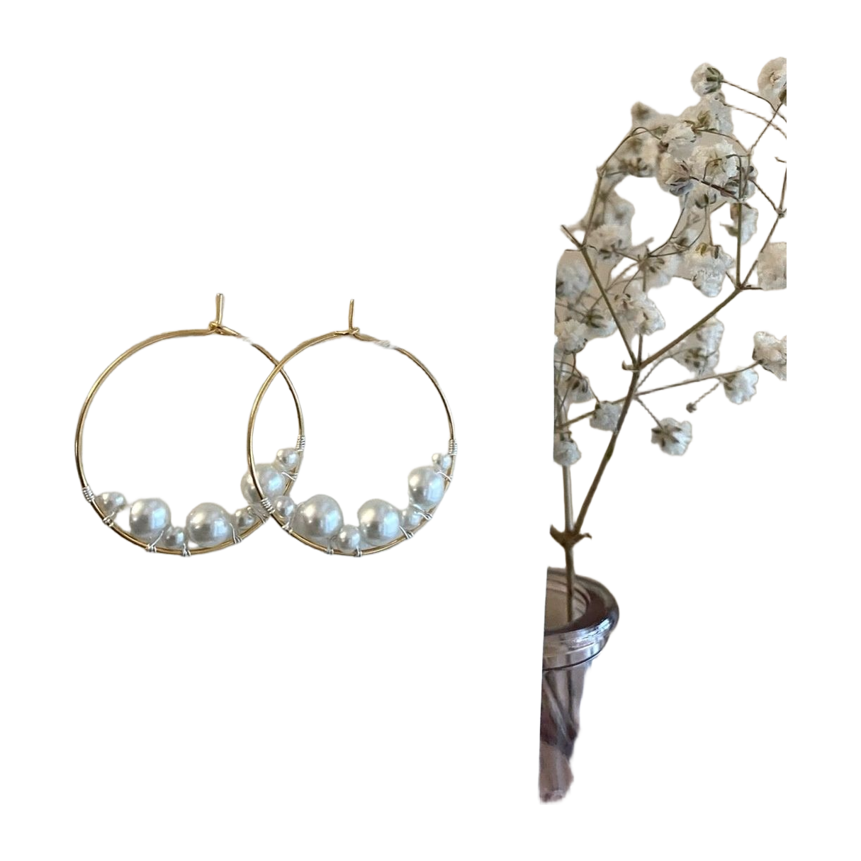 Käsintehdyt korvakorut helmillä. Metalliosat ruostumatonta terästä.