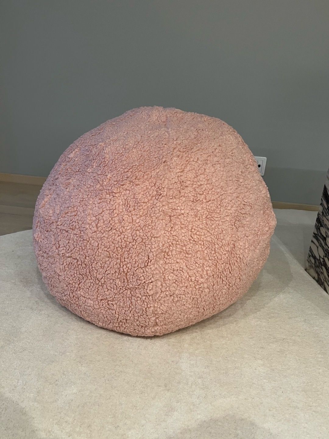 Uusi käyttämätön Jotexilta ostettu pehmeä vaaleanpunainen pallonmuotoinen tyyny. Päällyskankaassa on piilovetoketju, ja se voidaan irrottaa pesua varten. Voidaan pestä 40 asteessa. Tämä tyyny on sekä pehmeä että mukava, ja sitä voidaan käyttää sekä koristeena, leikeissä että lepäämiseen.