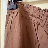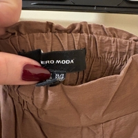 Ruskeat Vero Modan Nea-housut pitkällä lahkeella (tall-mallisto, yli 175-senttisille). Housuissa korkea vyötärö ja leveät lahkeet. Ohutta, mukavaa kangasta.