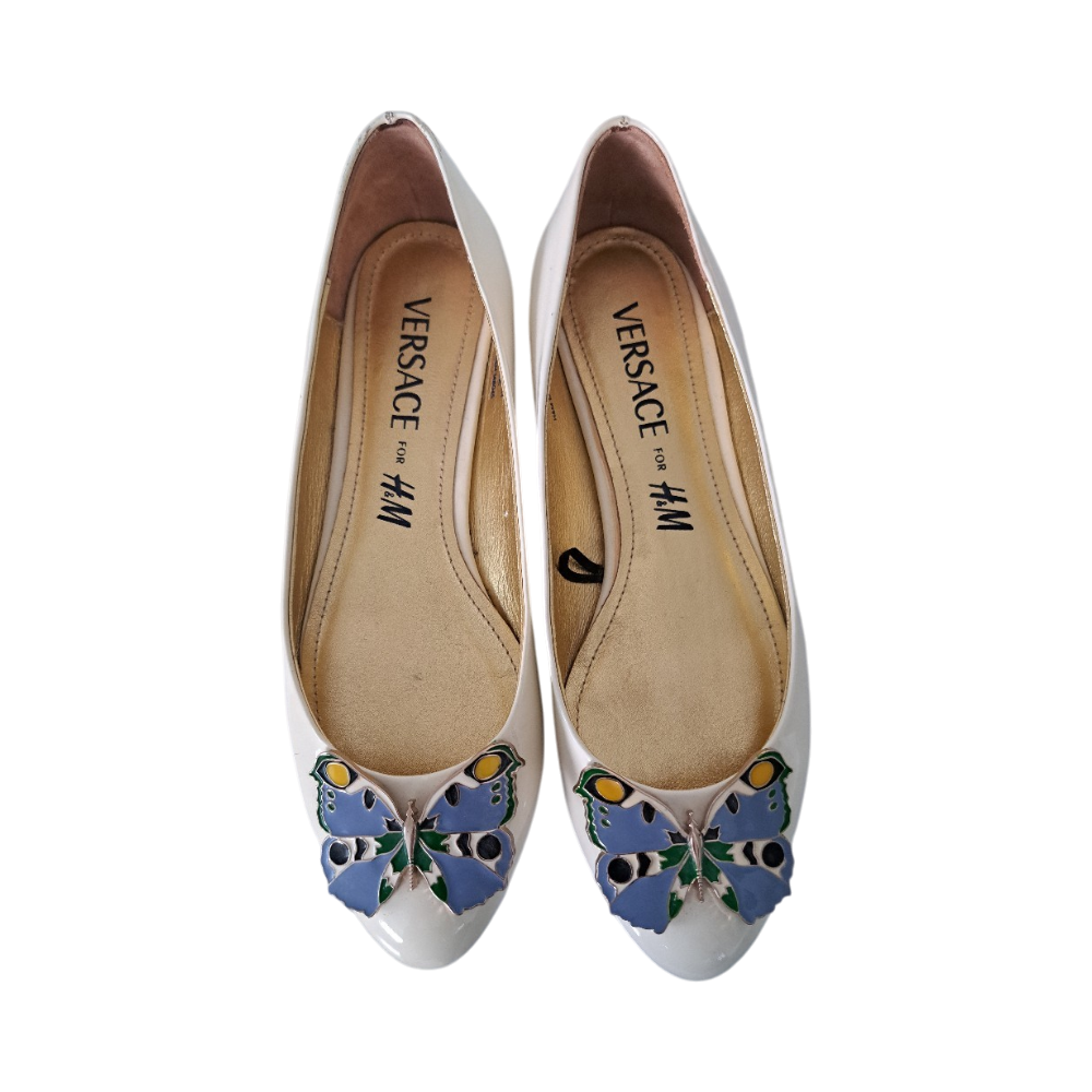 Chic and timeless cream patent flats from the exclusive VERSACE for H&M collection.