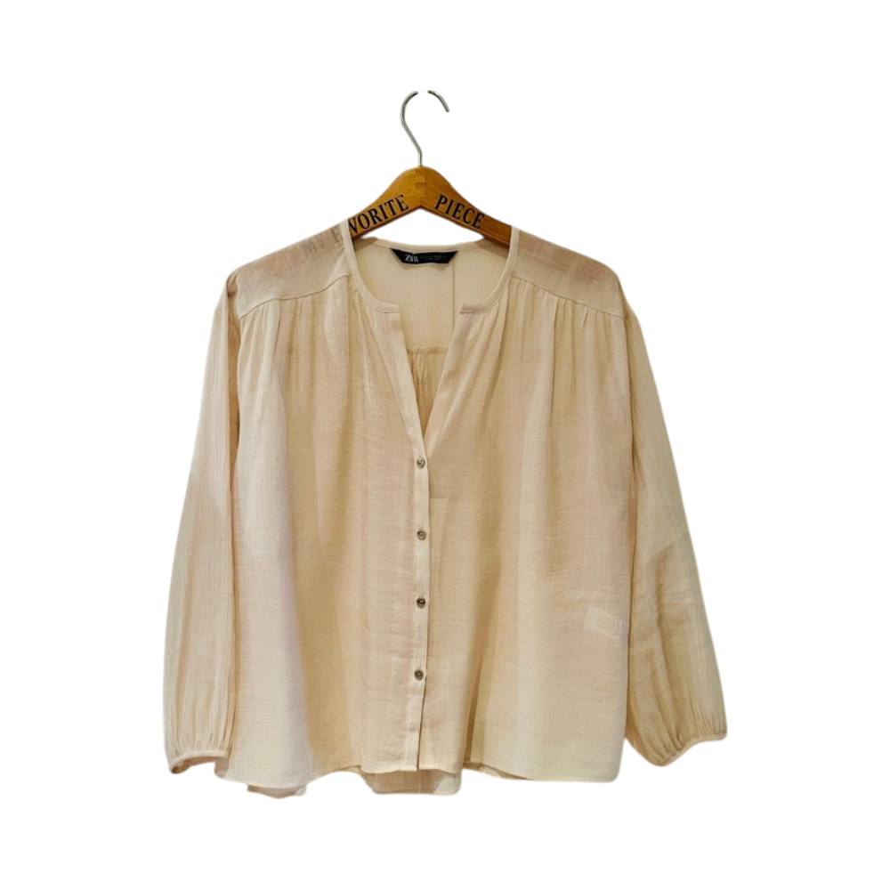 Kevyt, pitkähihainen naisten paita, napit edessä.