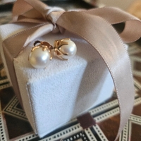Upeat kultaiset isot helmikorvakorut, ostettu Suomessa. Erinomainen kunto, sopii lahjaksi.