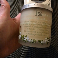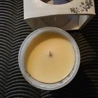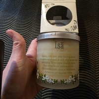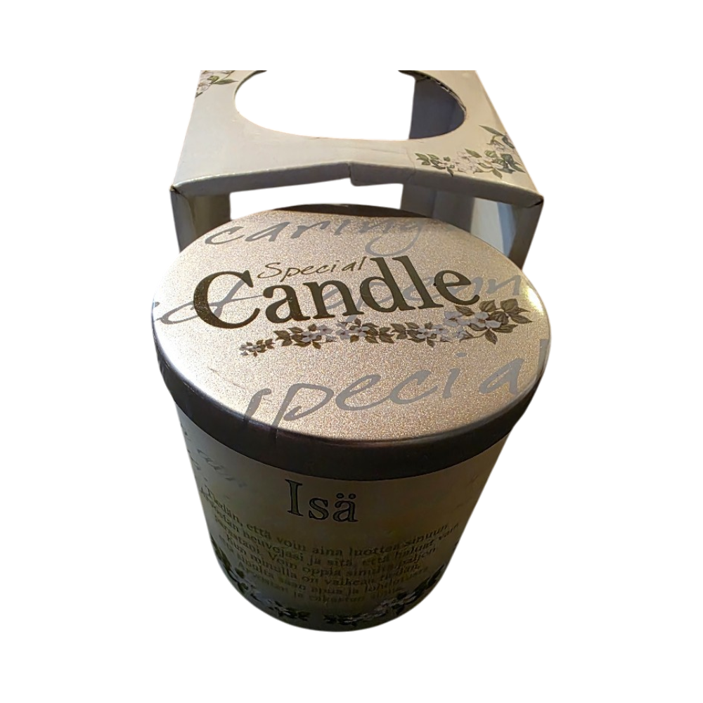 Vaniljantuoksuinen kynttilä koristeellisessa purkissa.