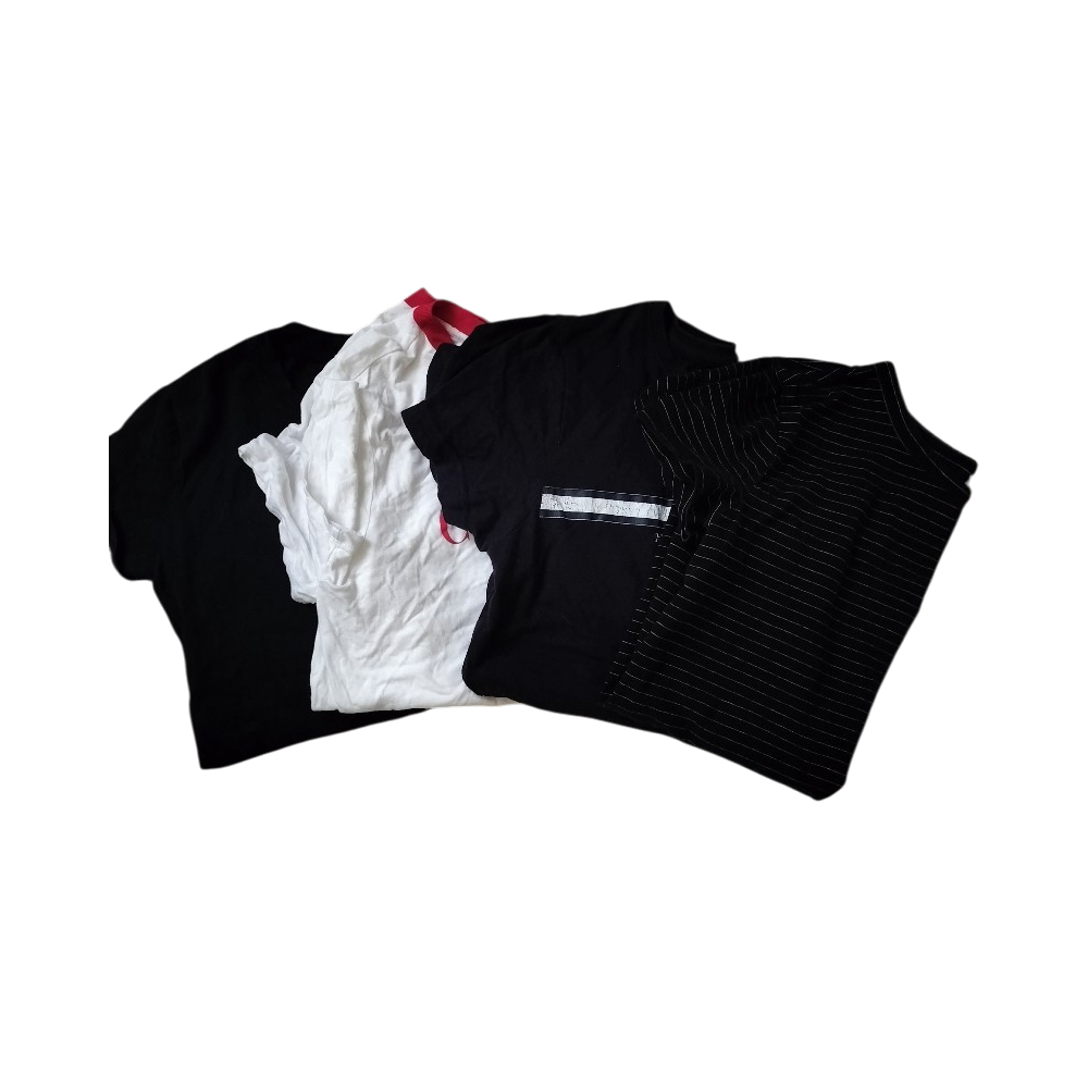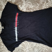 Musta, lyhythihainen t-paita, pieni tahra etupuolella.