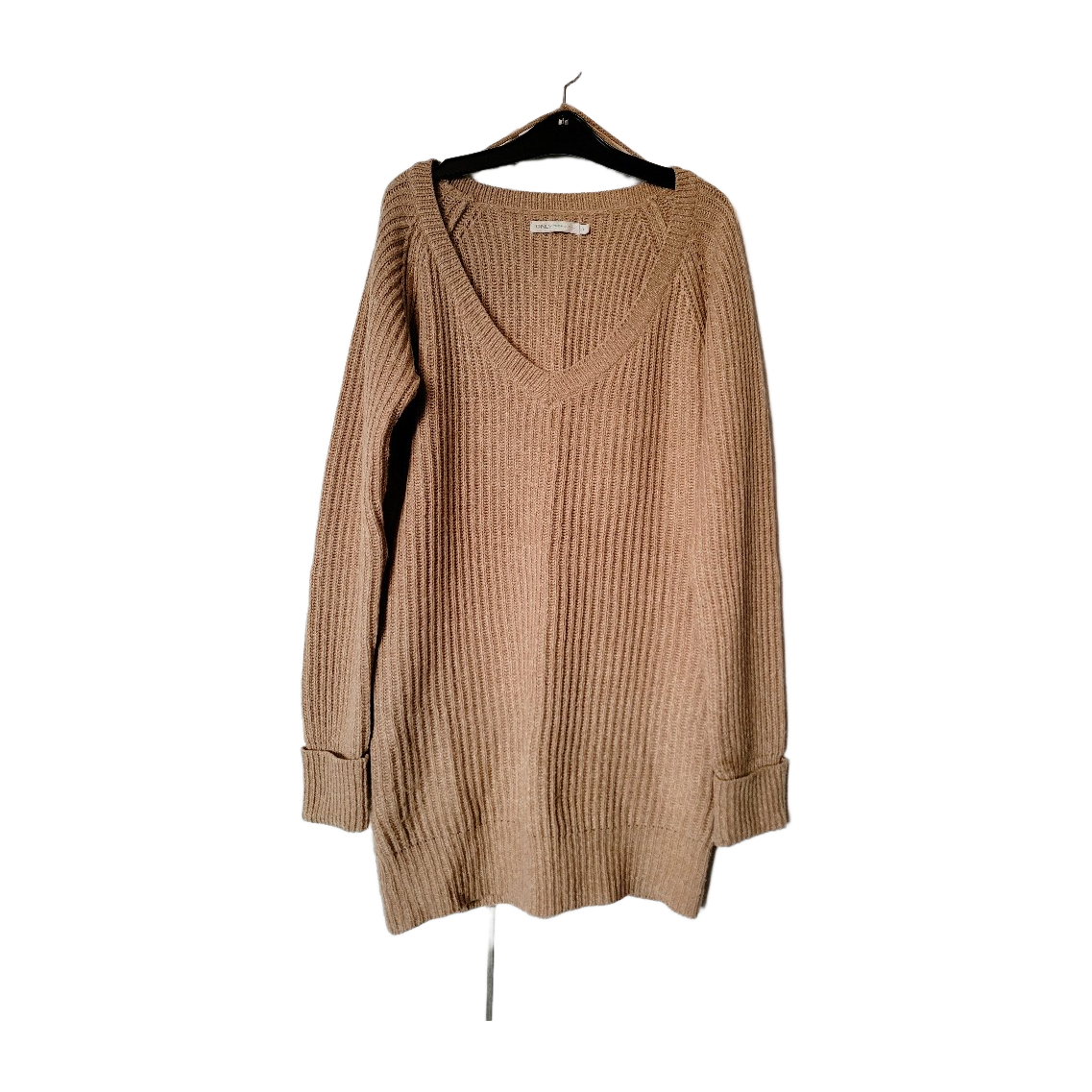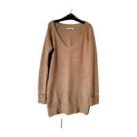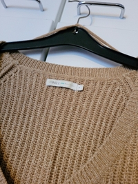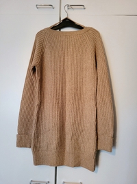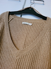 Sinapin/ruskean sävyinen neule.