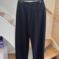 Naisten mustat leveälahkeiset housut – koko S (Lager 157). Huolitellut kudotusta kankaasta valmistetut housut. Rento malli, normaalikorkuinen vyötärö ja leveät lahkeet.