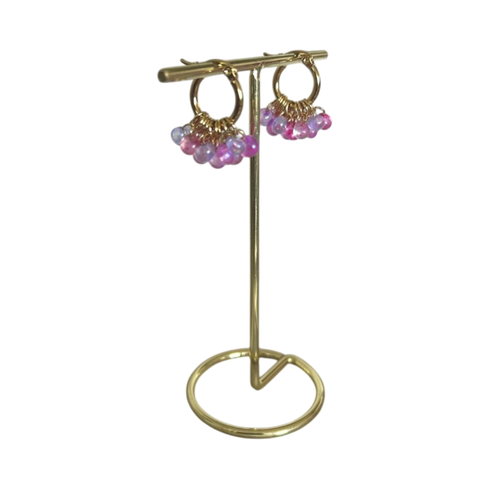 Käsintehdyt korvakorut lasihelmillä. Saatavilla sekä hopeisena että kultaisena. Renkaan halkaisija noin 1,5 cm. Lasihelmistä huolimatta hyvin kevyet🫶🏽