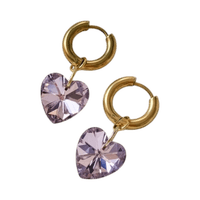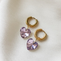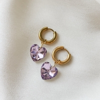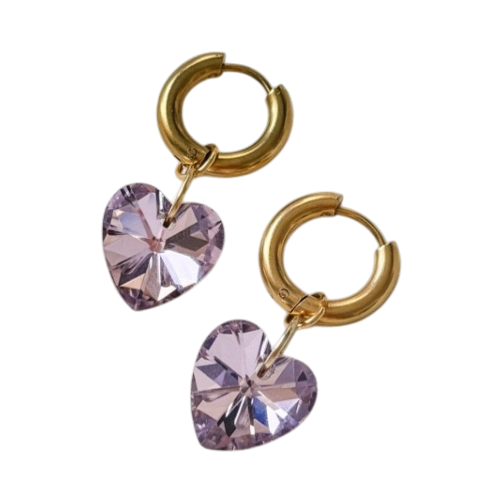 Kultaiset renkaat, roikkuva vaaleanpunainen kristallisydän.