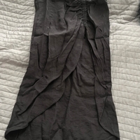 Ensimmäinen kuva H&M sivulta, muut kuvat omasta tuotteesta. Hame ollut kaapissa säilytyksessä josta ryppyyntynyt jonka takia vaikea saada havainnollistavaa kuvaa mallista. Ollut pari kertaa käytössä ja jäänyt itselle pieneksi. Hameen mitta pisimmillään n. 87cm ja vyötärön leveys n. 33cm. Hameessa on vetoketju ja pieni hakanen, materiaali ei jousta.