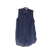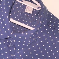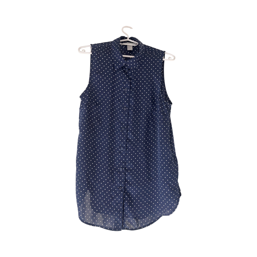 Sininen valkopilkullinen hihaton nappipusero, kevyt materian.