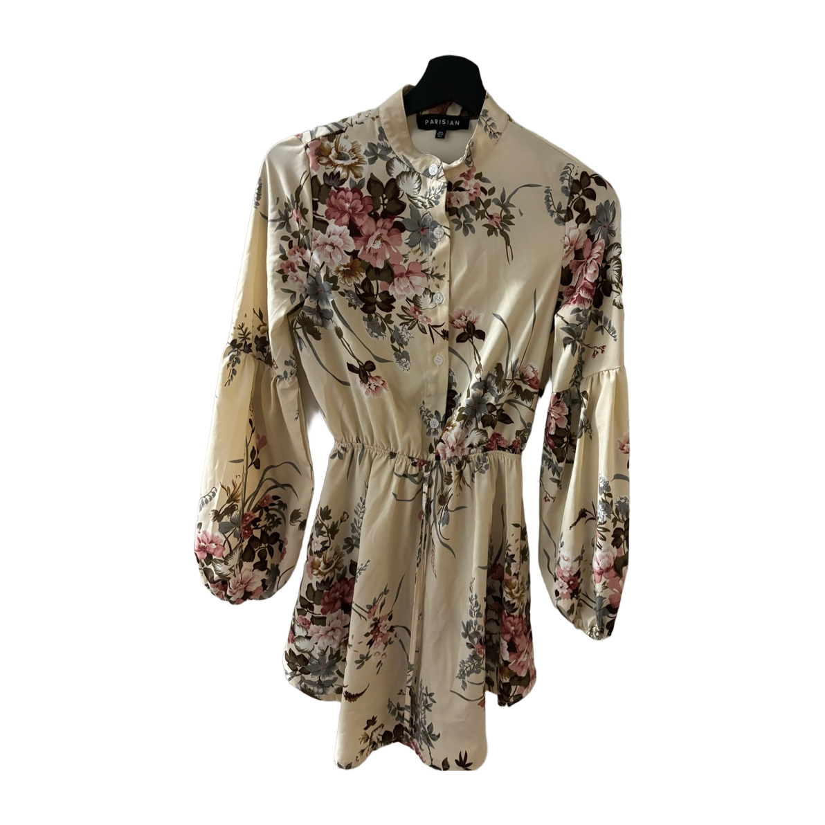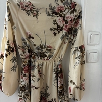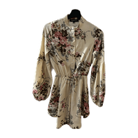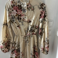 Beige kukkamekko pitkähihainen, kukkakuosi, napit edessä