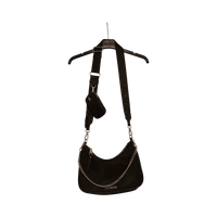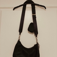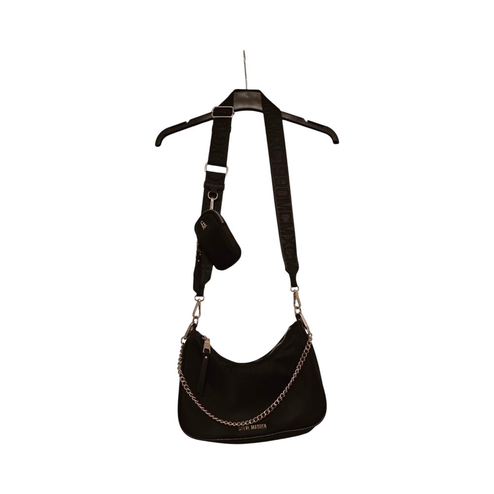 Musta olkalaukku hopeisilla yksityiskohdilla. Käytetty max. pari kertaa, kunto moitteeton.