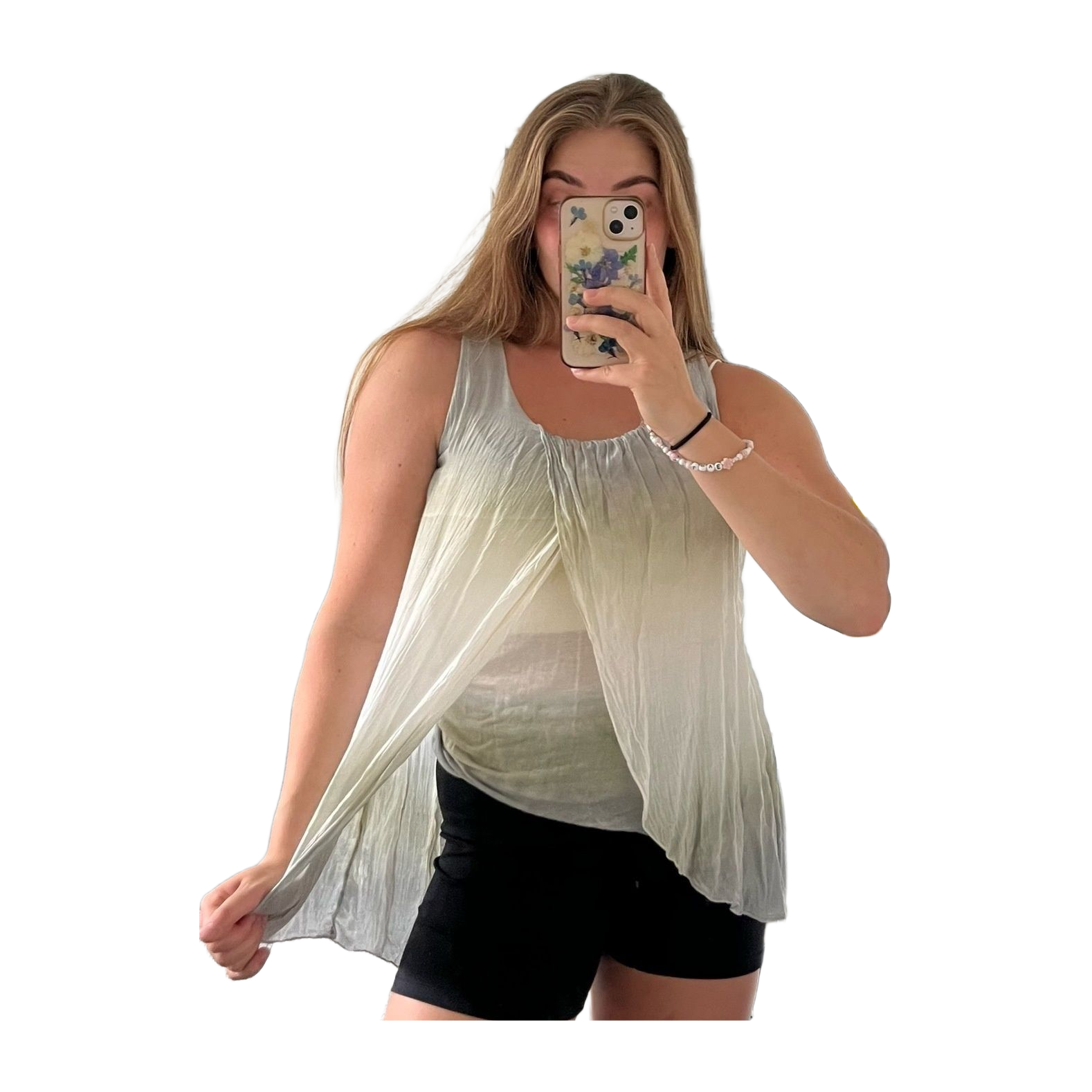 Liukuvärjätty toppi pehmeää materiaalia. Uudenveroisessa kunnossa, en tiedä mistä ostettu, äitini vanha. Sopii hyvin ainakin m-kokoiselle.