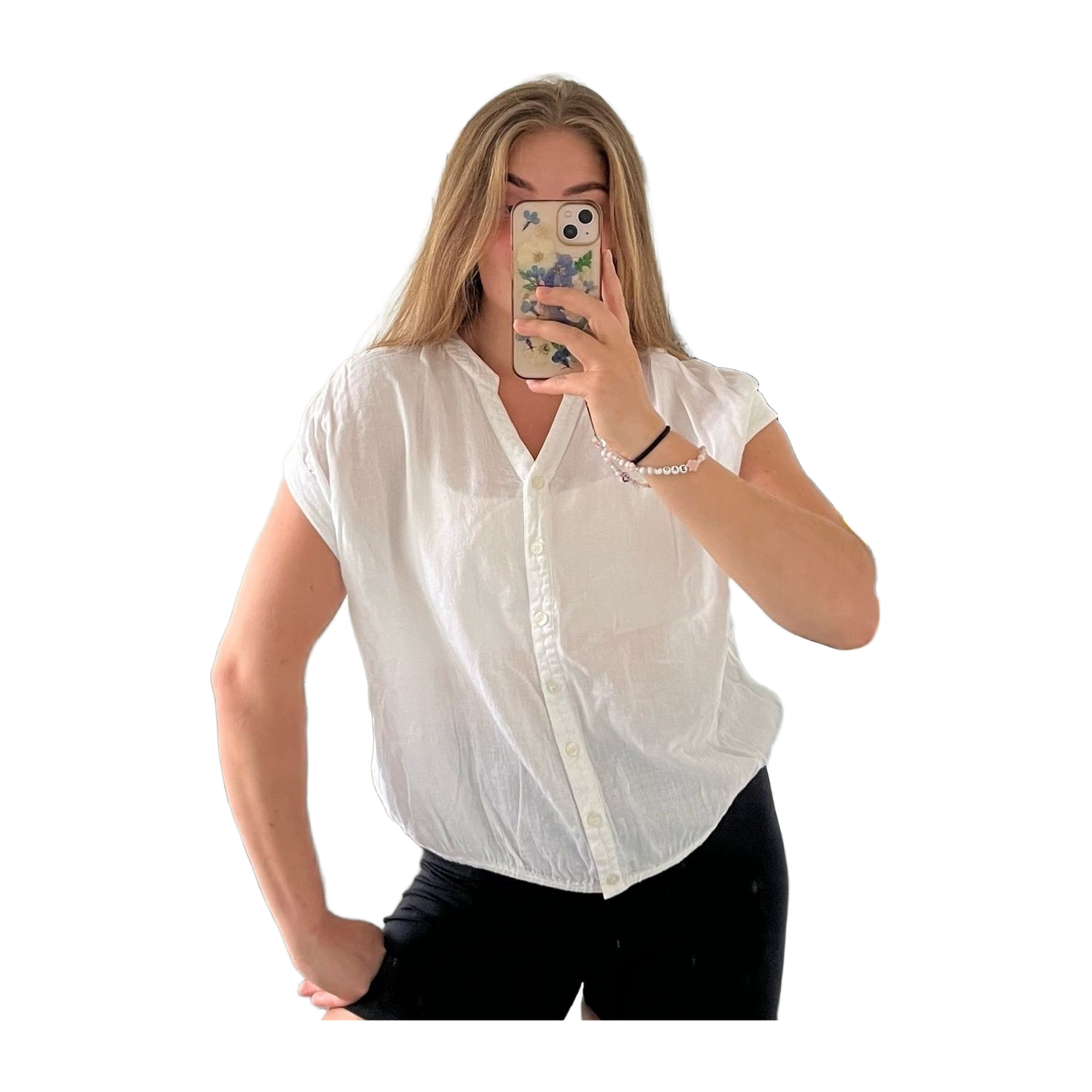 Valkoinen t-paita kokoa 36. Säilytyksen jäljiltä rypistynyt.
