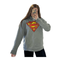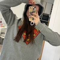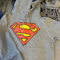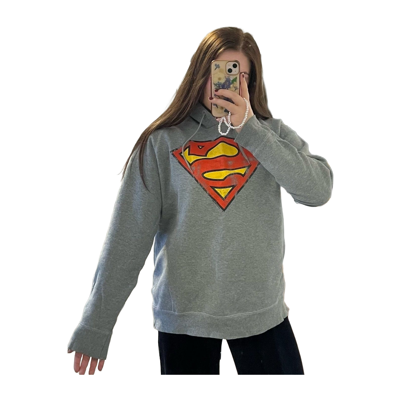 Superman huppari koossa XXL, vastaa enemmän ehkä L-XL kokoa sillä hihat eivät ole kovin leveät. Superman logo tarkoituksella kuluneen näköinen.