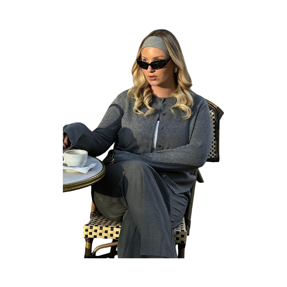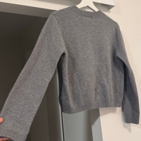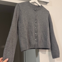 Kerran kuvissa pidetty harmaa neuletakki, koko L. Premium Quality. Materiaali 100% villa