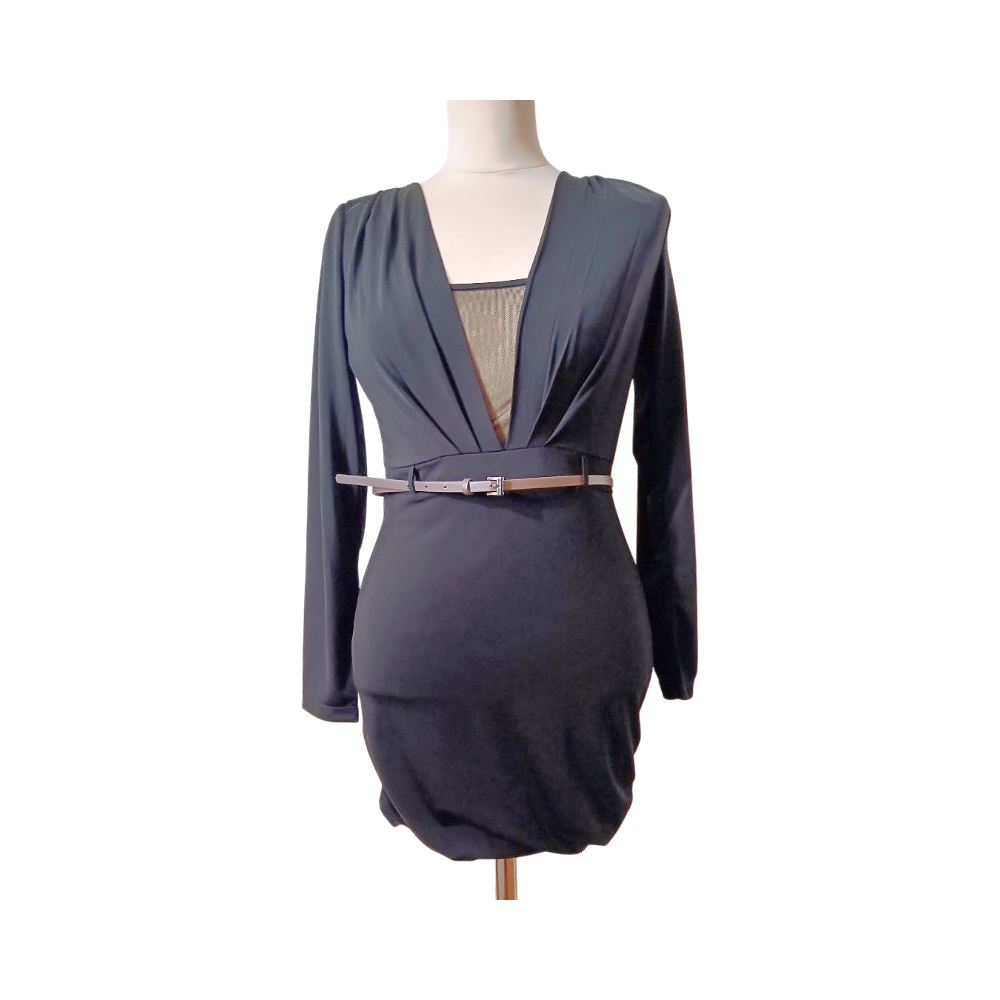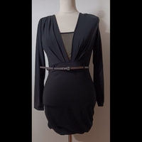 Niukkalinjainen musta mekko.