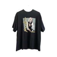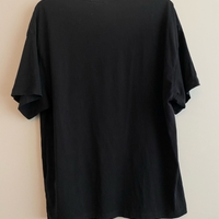 Oversize-mallinen musta t‑paita kuvaprintillä.