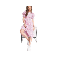Puff sleeves, tiered skirt, open back tie detail. Great condition, just don't like the fit on me